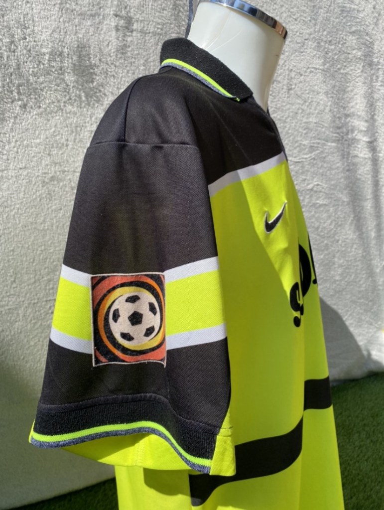 This jersey is from Lambert’s second season at the Westfalenstadion where their only trophy would be the Inter-continental Cup, now known as the FIFA Club World Cup. A disappointing league campaignwould see Dortmund finish tenth in the Bundesliga as FC Kaiserslautern lifted their fourth top division title. They were without Lambert for most of this campaign after Lambert left for Scotland. Dortmund also lost the Super Cup to the Winner of the Cup Winners’ Cup, Barcelona, 3-1 on aggregate. They would also be beaten by the other Spanish League giants Real Madrid 2-0 in the semi-finals of the Champions League, Real Madrid would go on to lift the trophy.