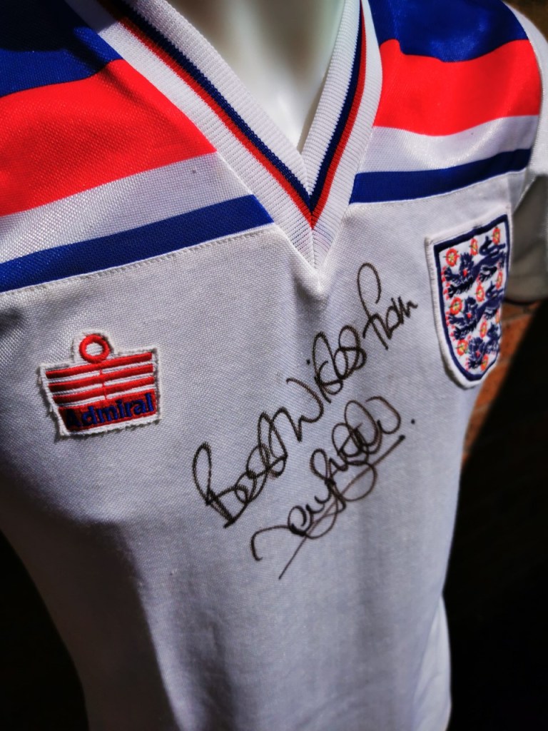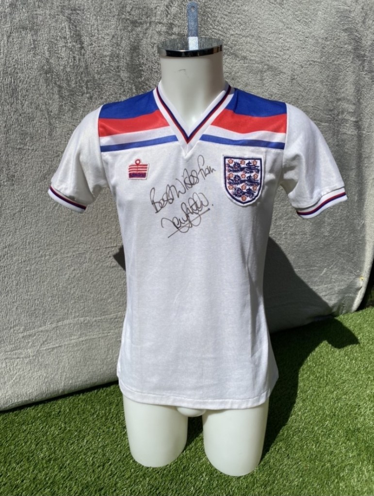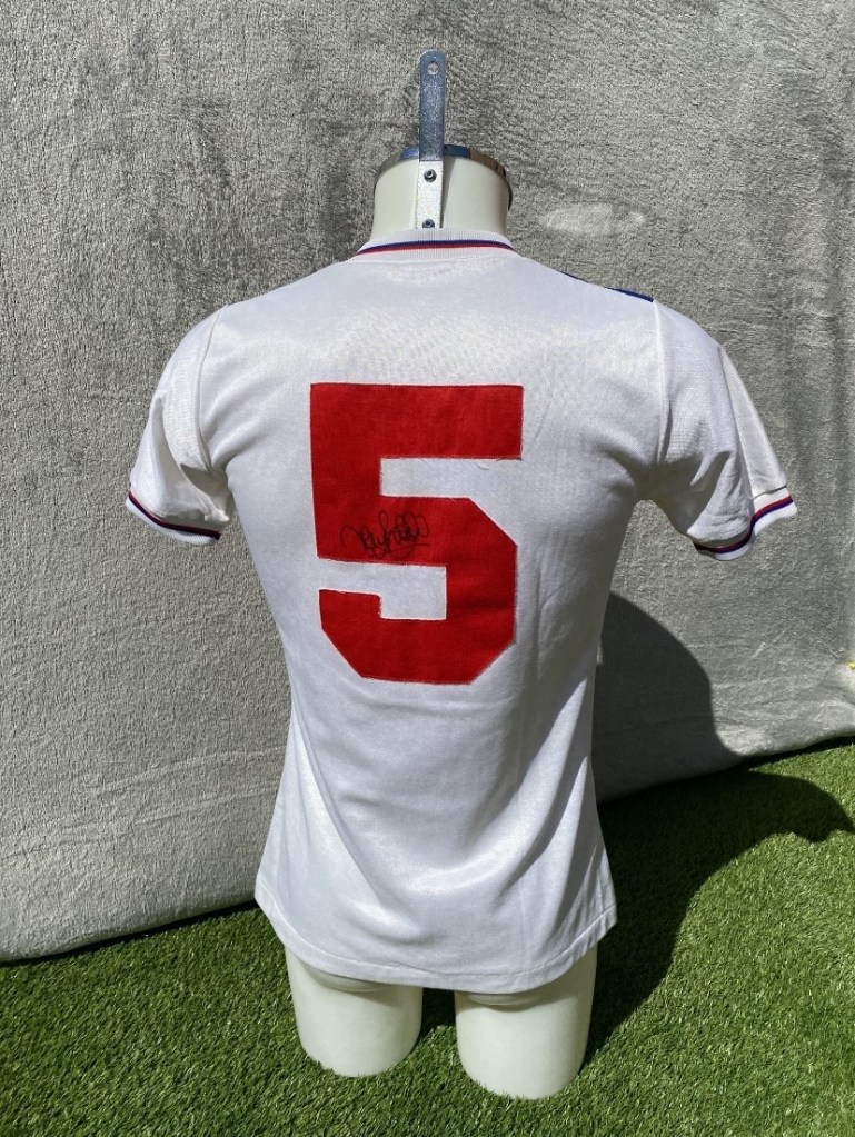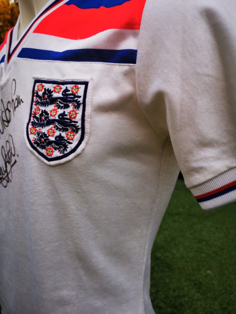 The top we have here was worn against Wales on the 27th of April in 1982, in Cardiff, where England won 1-0 after a goal from Trevor Francis in the 74th minute. Butcher managed to keep a clean sheet against a Wales team with the likes of Liverpool’s Ian Rush and former Liverpool player Joey Jones while England had stars such as Glenn Hoddle and Ray Wilkins on the pitch that day. This is one of only three occasions where Butcher would wear the number 5 jersey for England, preferring to wear the number 6 jersey once he was firmly established in the England set-up.