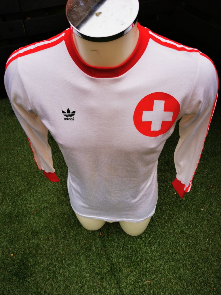 This jersey is from Switzerland’s clash with Scotland from the 7th of April 1976. The game ended 1-0 to Scotland with Willie Pettigrew scoring on his debut for his country inside the first two minutes of the game.