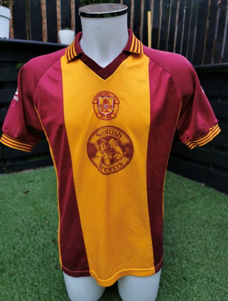 So this time we have the first Motherwell top to ever feature a sponsor, Scottish Brewers. This was worn during the 82/83 season where Motherwell finished 8th in the Scottish top flight, missing out on the drop by seven points. This league title was won by a strong Dundee Utd team where there was only one point between United, Celtic and Aberdeen.