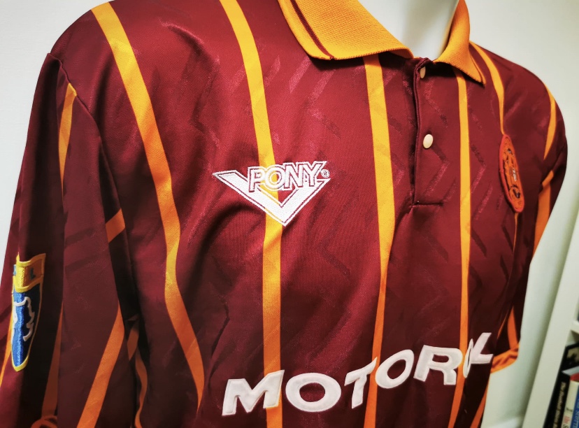 The 94/95 season was definitely one to remember as it was the first season to introduce the new league structure of a ten team league in Scotland’s top flight and was also the first season where three points were awarded for a win. Rangers won their seventh league title in a row and First Division side Raith Rovers won the league cup while Celtic finished fourth but still managed to win the Scottish Cup but as usual we’re looking into Motherwell’s performance that season and showing off a famous Pony made away top.